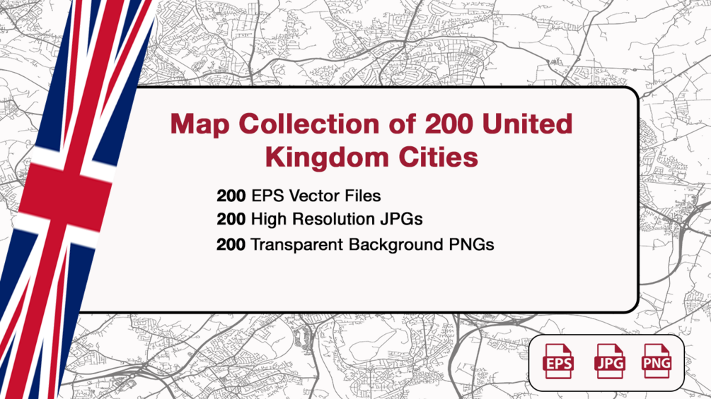 Explore our extensive collection of over 200 high-resolution maps of United Kingdom cities, available in PNG, EPS, and JPG formats. Ideal for detailed work in Adobe Illustrator and Photoshop, each map boasts a clarity-enhancing 6000x4000 pixel resolution